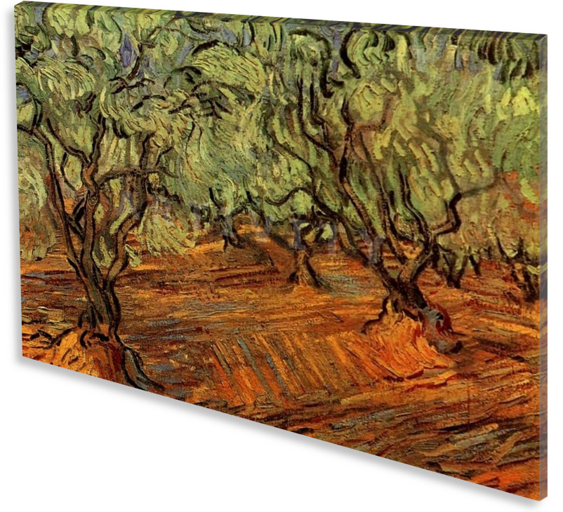 Πίνακας ζωγραφικής σε καμβά. Ο πίνακας "Ελαιώνας Στο Φωτεινό Μπλε Ουρανό" από τον ζωγράφο Βίνσεντ Βαν Γκογκ (Vincent Van Gogh) αναπαράγεται σε ποιοτικό βαμβακερό καμβά ζωγραφικής. Είναι ιδανικός για διακόσμηση σπιτιού, διακόσμηση γραφείου, ή όπου αλλού επιθυμείτε. Ακόμη και σαν πρόταση δώρου. Τα υλικά του, είναι κατάλληλα για εσωτερική χρήση. Τα χρώματα είναι ανθεκτικά, και με απαράμιλλη ζωντάνια. Το τελάρο καμβά, είναι από ξύλο πεύκου (υλικό που προτείνεται λόγω αντοχής) και όταν χρειάζεται (για μεγάλες διαστάσεις) φέρει επιπλέον ενίσχυση. Ο πίνακας μπορεί να δεχτεί και πρόσθετη επεξεργασία με λείο βερνίκι , ή με λαδοτυπία ("ελαιο-τυπία"). Τα οριζόντια έργα, μπορεί να αναπαραχθούν και σε τρίπτυχο, ή δίπτυχο πίνακα. (Το υδατογράφημα, δεν εμφανίζεται στην αναπαραγωγή του έργου).