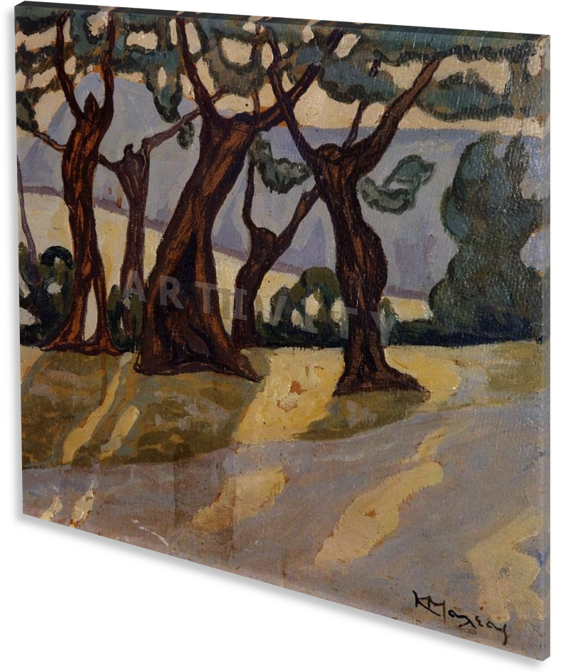 Πίνακας ζωγραφικής σε καμβά. Ο πίνακας "Δάσος" από τον ζωγράφο Κωνσταντίνος Μαλέας (Konstantinos Maleas) αναπαράγεται σε ποιοτικό βαμβακερό καμβά ζωγραφικής. Είναι ιδανικός για διακόσμηση σπιτιού, διακόσμηση γραφείου, ή όπου αλλού επιθυμείτε. Ακόμη και σαν πρόταση δώρου. Τα υλικά του, είναι κατάλληλα για εσωτερική χρήση. Τα χρώματα είναι ανθεκτικά, και με απαράμιλλη ζωντάνια. Το τελάρο καμβά, είναι από ξύλο πεύκου (υλικό που προτείνεται λόγω αντοχής) και όταν χρειάζεται (για μεγάλες διαστάσεις) φέρει επιπλέον ενίσχυση. Ο πίνακας μπορεί να δεχτεί και πρόσθετη επεξεργασία με λείο βερνίκι , ή με λαδοτυπία ("ελαιο-τυπία"). Τα οριζόντια έργα, μπορεί να αναπαραχθούν και σε τρίπτυχο, ή δίπτυχο πίνακα. (Το υδατογράφημα, δεν εμφανίζεται στην αναπαραγωγή του έργου).