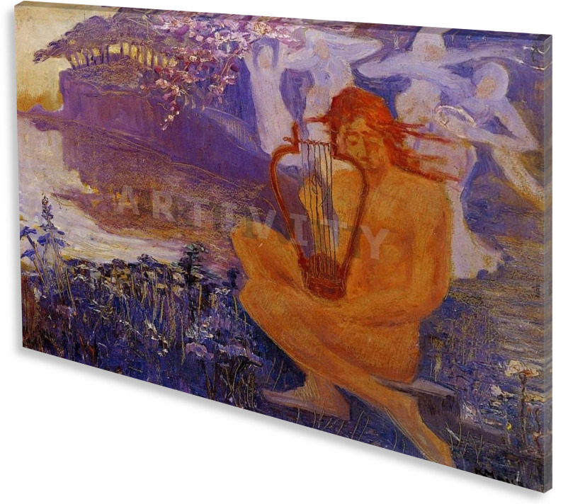 Πίνακας ζωγραφικής σε καμβά. Ο πίνακας "Ορφέας με τη Λύρα" από τον ζωγράφο Κωνσταντίνος Μαλέας (Konstantinos Maleas) αναπαράγεται σε ποιοτικό βαμβακερό καμβά ζωγραφικής. Είναι ιδανικός για διακόσμηση σπιτιού, διακόσμηση γραφείου, ή όπου αλλού επιθυμείτε. Ακόμη και σαν πρόταση δώρου. Τα υλικά του, είναι κατάλληλα για εσωτερική χρήση. Τα χρώματα είναι ανθεκτικά, και με απαράμιλλη ζωντάνια. Το τελάρο καμβά, είναι από ξύλο πεύκου (υλικό που προτείνεται λόγω αντοχής) και όταν χρειάζεται (για μεγάλες διαστάσεις) φέρει επιπλέον ενίσχυση. Ο πίνακας μπορεί να δεχτεί και πρόσθετη επεξεργασία με λείο βερνίκι , ή με λαδοτυπία ("ελαιο-τυπία"). Τα οριζόντια έργα, μπορεί να αναπαραχθούν και σε τρίπτυχο, ή δίπτυχο πίνακα. (Το υδατογράφημα, δεν εμφανίζεται στην αναπαραγωγή του έργου).