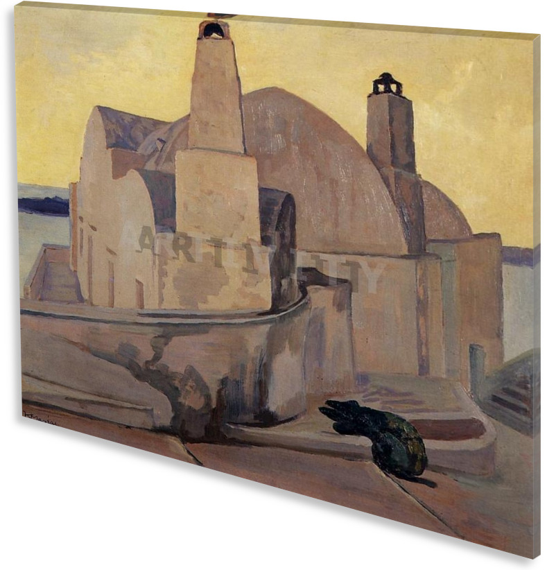 Πίνακας ζωγραφικής σε καμβά. Ο πίνακας "Σπίτι & Θάλασσα" από τον ζωγράφο Κωνσταντίνος Μαλέας (Konstantinos Maleas) αναπαράγεται σε ποιοτικό βαμβακερό καμβά ζωγραφικής. Είναι ιδανικός για διακόσμηση σπιτιού, διακόσμηση γραφείου, ή όπου αλλού επιθυμείτε. Ακόμη και σαν πρόταση δώρου. Τα υλικά του, είναι κατάλληλα για εσωτερική χρήση. Τα χρώματα είναι ανθεκτικά, και με απαράμιλλη ζωντάνια. Το τελάρο καμβά, είναι από ξύλο πεύκου (υλικό που προτείνεται λόγω αντοχής) και όταν χρειάζεται (για μεγάλες διαστάσεις) φέρει επιπλέον ενίσχυση. Ο πίνακας μπορεί να δεχτεί και πρόσθετη επεξεργασία με λείο βερνίκι , ή με λαδοτυπία ("ελαιο-τυπία"). Τα οριζόντια έργα, μπορεί να αναπαραχθούν και σε τρίπτυχο, ή δίπτυχο πίνακα. (Το υδατογράφημα, δεν εμφανίζεται στην αναπαραγωγή του έργου).
