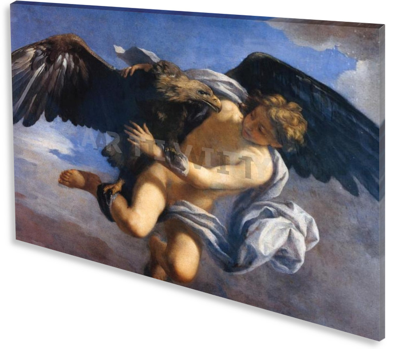 Πίνακας ζωγραφικής σε καμβά. Ο πίνακας "Η απαγωγή του Γανυμήδη" από τον ζωγράφο Καμπιάνι (Campani) αναπαράγεται σε ποιοτικό βαμβακερό καμβά ζωγραφικής. Είναι ιδανικός για διακόσμηση σπιτιού, διακόσμηση γραφείου, ή όπου αλλού επιθυμείτε. Ακόμη και σαν πρόταση δώρου. Τα υλικά του, είναι κατάλληλα για εσωτερική χρήση. Τα χρώματα είναι ανθεκτικά, και με απαράμιλλη ζωντάνια. Το τελάρο καμβά, είναι από ξύλο πεύκου (υλικό που προτείνεται λόγω αντοχής) και όταν χρειάζεται (για μεγάλες διαστάσεις) φέρει επιπλέον ενίσχυση. Ο πίνακας μπορεί να δεχτεί και πρόσθετη επεξεργασία με λείο βερνίκι , ή με λαδοτυπία ("ελαιο-τυπία"). Τα οριζόντια έργα, μπορεί να αναπαραχθούν και σε τρίπτυχο, ή δίπτυχο πίνακα. (Το υδατογράφημα, δεν εμφανίζεται στην αναπαραγωγή του έργου).